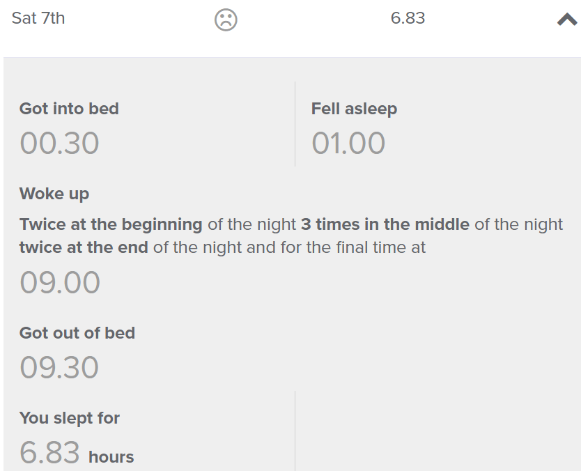 One of the first things I had to do was complete a sleep diary every night for a week so they could analyse my current sleep situation. I was sceptical at this point, like what can they tell me that I already don’t know. I’m having trouble sleeping, duh!!