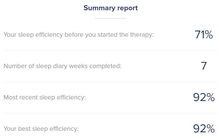 I cannot thank Sleepstation enough for this course. My sleep has improved tenfold, even with less time in bed I can feel like I’ve had the best night sleep possible.  It was a tough 8 weeks and I was sceptical that it would work. Even if you think you’ve tried all these techniques, you’d be surprised at how well they work when you get given the right ones for your sleep disturbances.